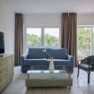 Apartment 436 is located on the third floor accessible by stairs or lift. Composed of living area with sofa bed, TV, dining table and small balcony. Full kitchen separated from the living room. The sleeping area consists of a double bedroom and a bedroom with two bunk beds. A large bathroom with tub / shower and a smaller one with shower. Private garage 400 meters from the residence, unequipped sun terrace shared with the other apartments on the 4th floor.